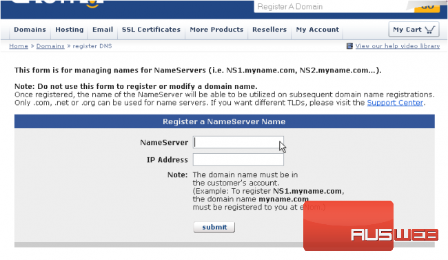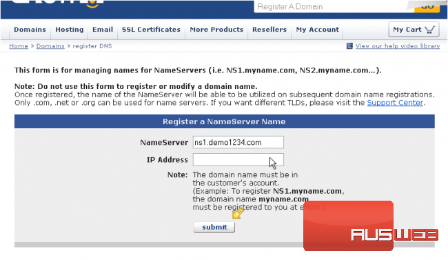 9) When ready, click the submit button to have the new nameserver created