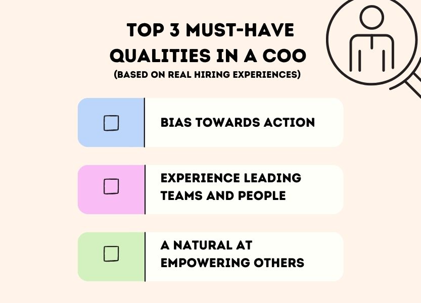 ✅ Key takeaway: Without the budget to hire a COO, you still have options to partner with someone of similar nature without breaking the bank. You may need to lay down some stepping stones before you invest in the “big” hire.