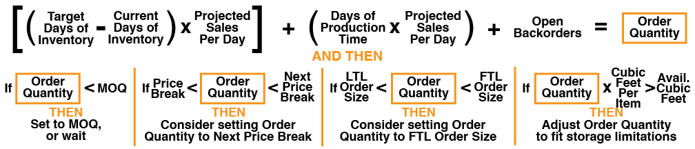 Once you have your adjusted days of inventory figure for everything you need, you’re ready to order, right? There are actually a few more considerations: backorders, price breaks, shipping logistics, and warehouse space.