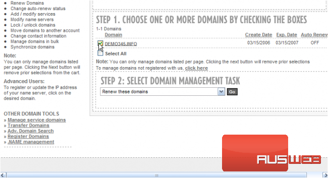 4) Select the domain name you wish to manage… in this case, demo345.info