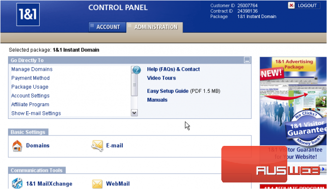 You are now logged in to your 1and1.com account