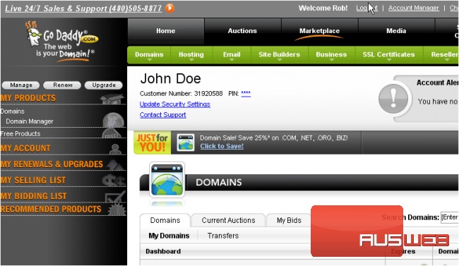 This demo assumes you have a domain name registered through godaddy.com, and starts from their home page