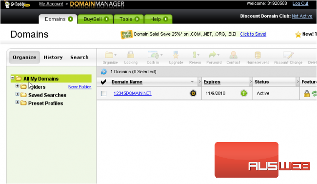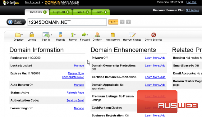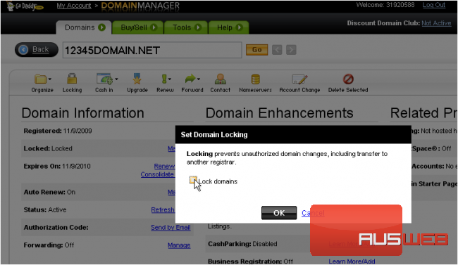 However, you must first ensure that your domain name is not locked, or being prevented from being transferred out of this registry….. and that’s what we’re going to do now…..