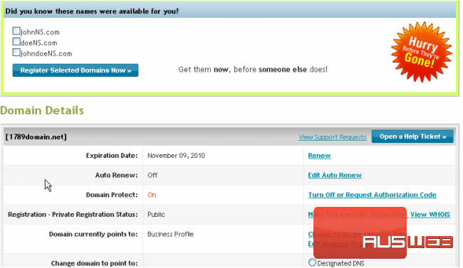 This demo assumes you have a domain name registered through NetworkSolutions.com, and starts from their home page