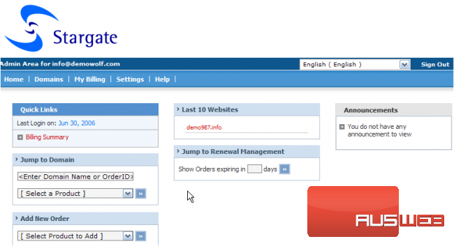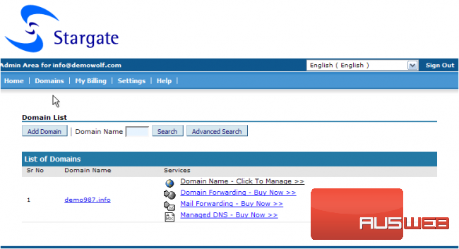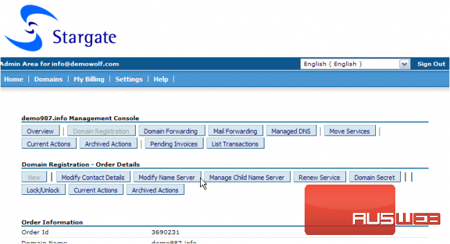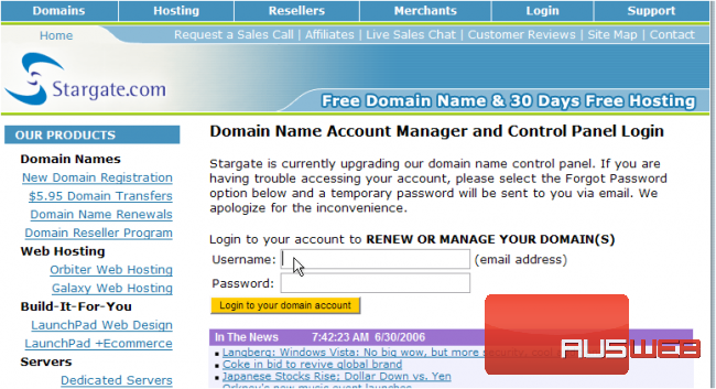 This demo assumes you have a domain name registered through StarGate.com, and starts from their home page