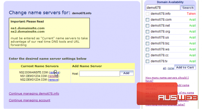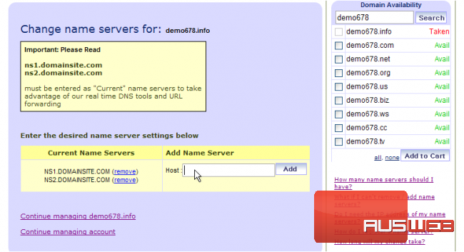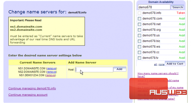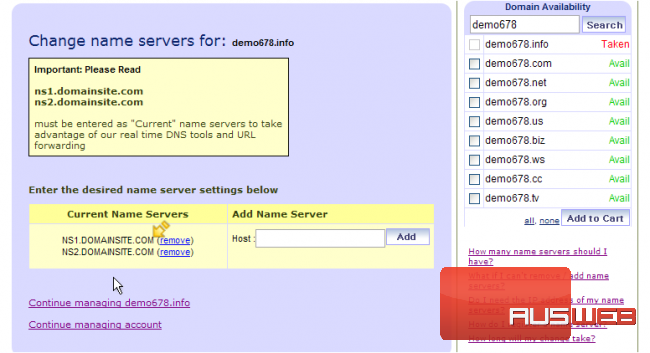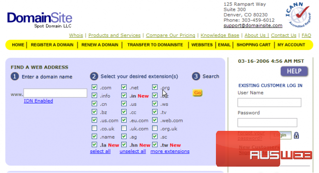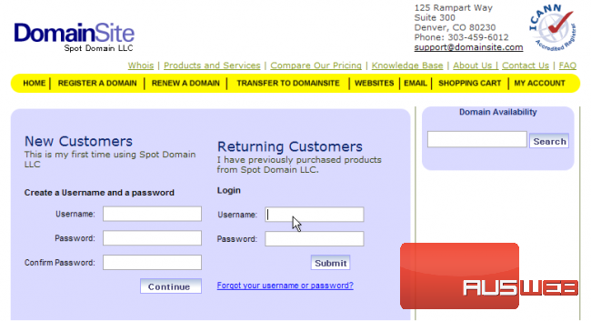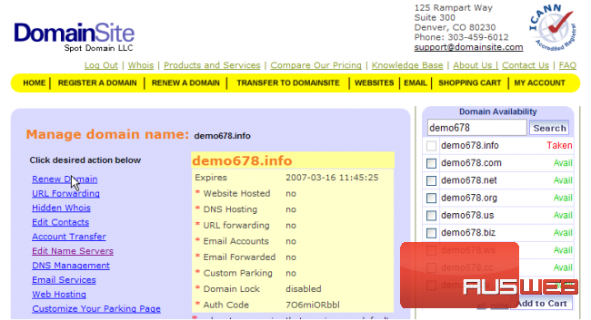 This demo assumes you have a domain name registered through DomainSite.com, and starts from the domainsite.com home page
