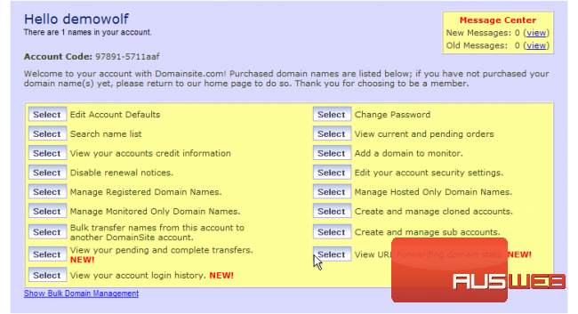 You are now logged in to your DomainSite.com account