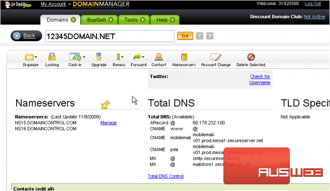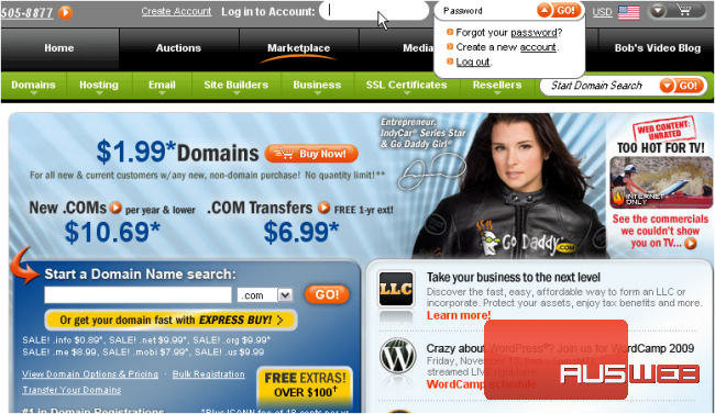 This demo assumes you have a domain name registered through GoDaddy.com, and starts from the godaddy.com home page