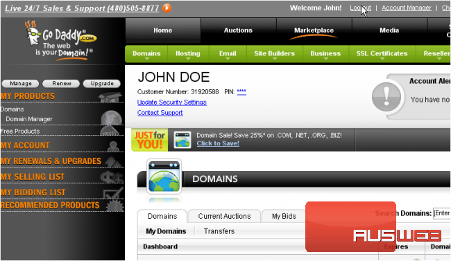 You are now logged in to your GoDaddy.com account