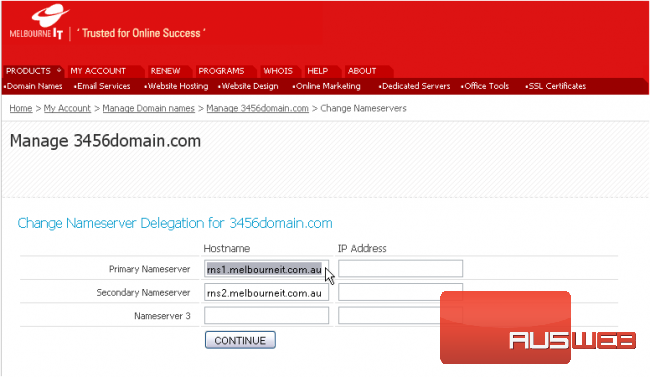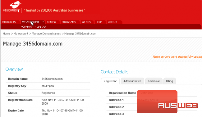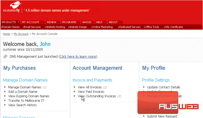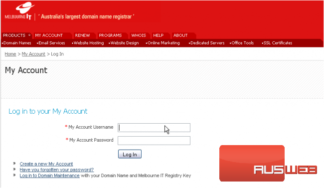 This demo assumes you have a domain name registered through MelbourneIT.com.au, and starts from the melbourneit.com.au home page