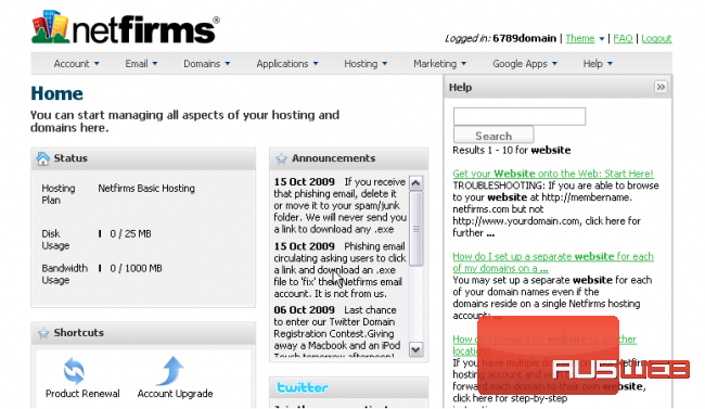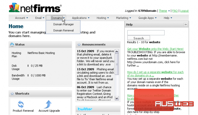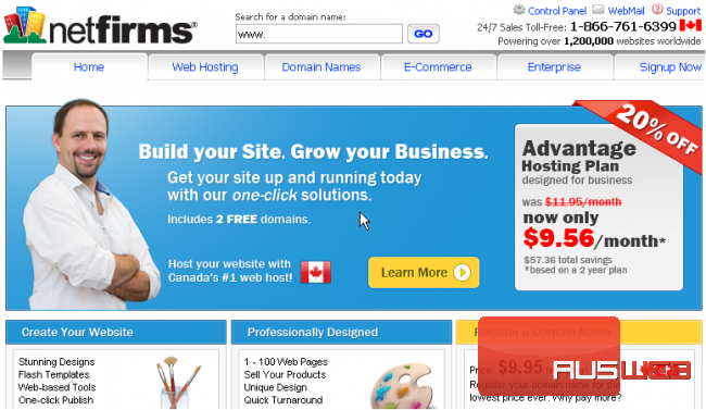 This demo assumes you have a domain name registered through Netfirms.ca, and starts from the Netfirms.ca home page