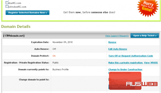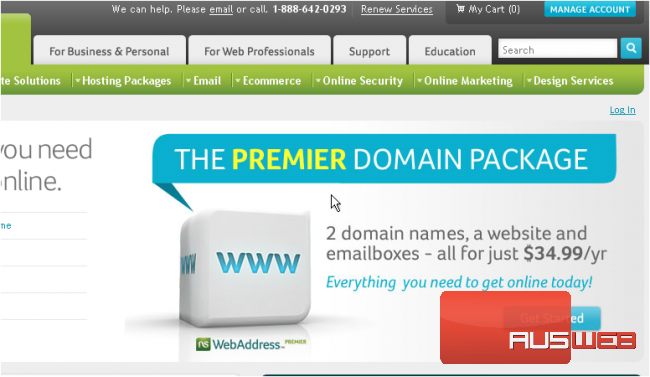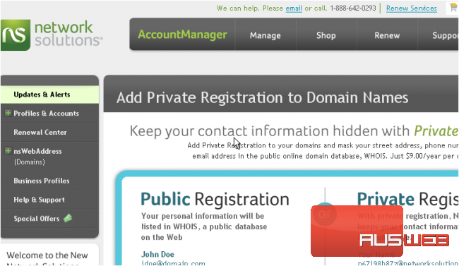 This demo assumes you have a domain name registered through NetworkSolutions.com, and starts from the networksolutions.com home page